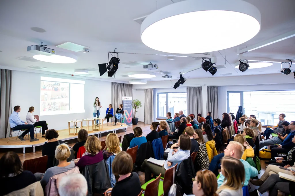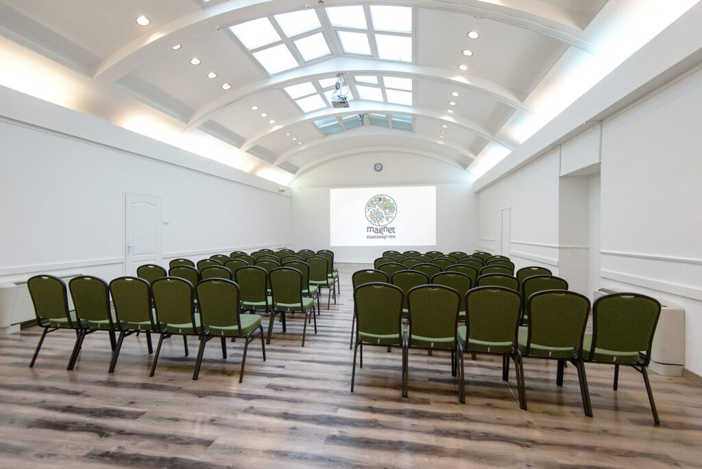 A MagNet Közösségi Ház szépséges, világos Hamvas termében leszünk. A recepció után ha balra furdulsz és felmész pár lépést egy rövid lépcsőn, úgy jutsz a Belső udvarba. Az udvaron átsétálva, jobbkéz felől látsz majd egy lépcsőt, az vezet fel egyenesen a rendezvény színhelyére.