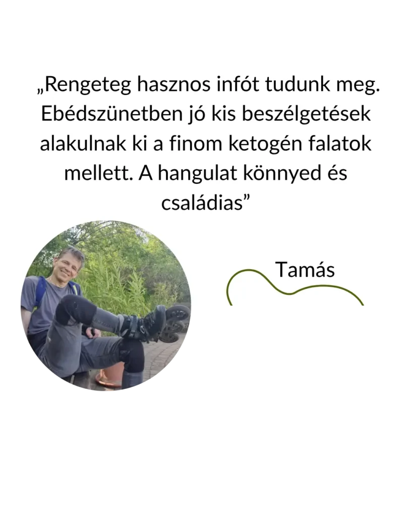 "Életem kb. felét mindenféle diéta, fogyókúra tette ki. Nagyon kitartóan megközelítettem a kívánt súlyt – de megtartani soha nem tudtam. Mindig többet mutatott a mérleg kb 1 évvel a diéta vége után…. Zoltánban az fogott meg, hogy nem csak beszél róla, hanem meg is teszi azt, amit ajánl! Útmutatásait követve kiderült, hogy van hatékony, elérhető, egyszerű – nem pepecselős-méregetős – módszer, amivel úgy tudtam fogyni, hogy nem kellett az életemet a változtatás miatt felforgatni, sőt nem kívántam/nem kívánom az édességet!!! Nagy szó, mert korábban ez nem így volt. Most 3 hónap alatt 9 kg-mal lettem könnyebb, ami nagyon jó érzés. A labor eredményeken is látszik a javulás."